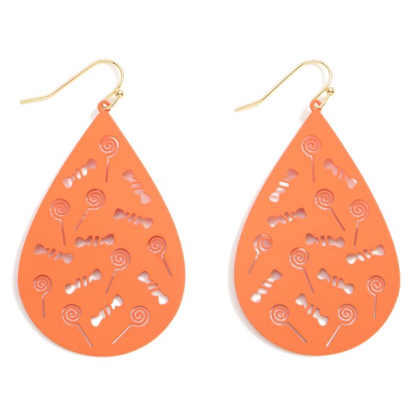 Halloween Metal Teardrop Earrings Featuring Candy Details.