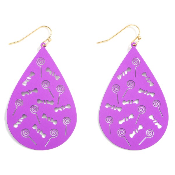 Halloween Metal Teardrop Earrings Featuring Candy Details.