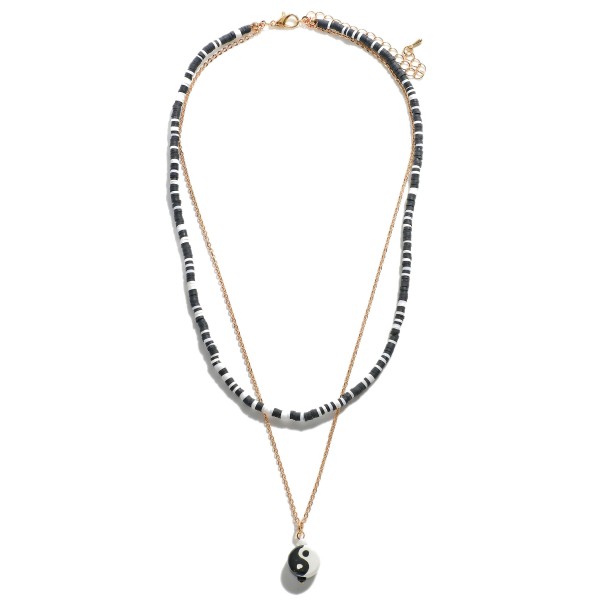 Heishi Bead And Gold Chain Layered Necklace With Yin-Yang Pendant