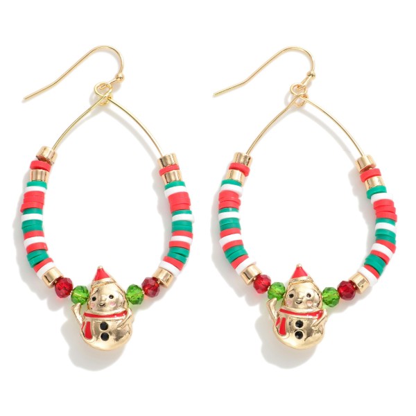 Heishi Beaded Teardrop Earrings Featuring Snowman Charms.