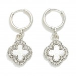 Huggie Hoop Earrings Featuring Pearlescent Clover Charms With Rhinestone Border