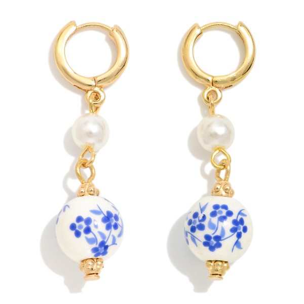 Huggie Hoop Gold Tone Earring Featuring Chinoiserie Flower Bead Charm