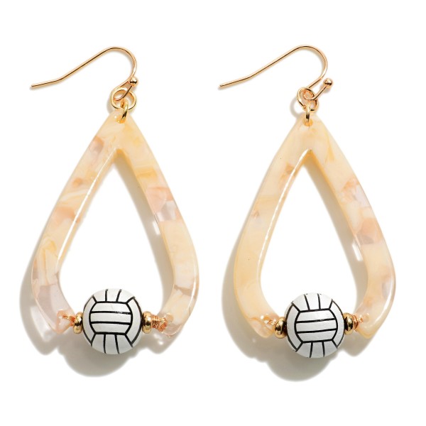 Ivory Acetate Teardrop Earrings Featuring Volleyball Bead