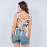 Knit Granny Square Swimsuit Cover Up Crop Top With Tassels
