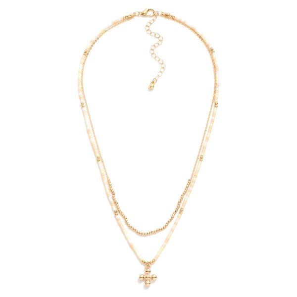 Layered Beaded and Chain Link Necklace Featuring Dainty Bead Cross Pendant