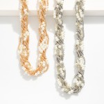 Layered Beaded Necklace Featuring Pearl & Metal Tone Beads