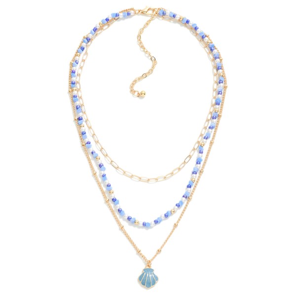 Layered Chain Link and Beaded Necklace Featuring Enamel Shell Pendant