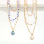 Layered Chain Link and Beaded Necklace Featuring Enamel Shell Pendant
