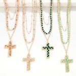 Layered Chain Link and Faceted Bead Necklace Featuring Beaded Cross Pendant