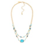 Layered Chain Link Necklace Featuring Faceted Beads & Glass Crystal Pendant