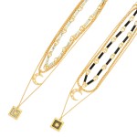 Layered Chain Link Necklace Featuring Marbled Acetate & Moon Pendant