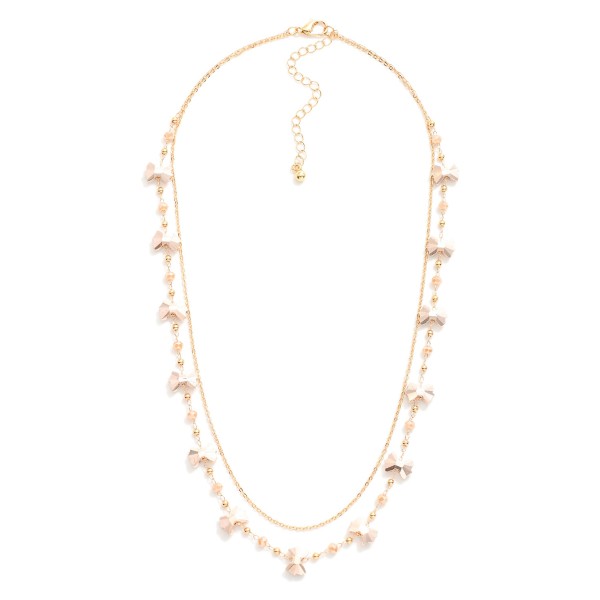 Layered Chain Link Necklace Featuring Metal Tone Faceted Beads & Bow Bead Stations