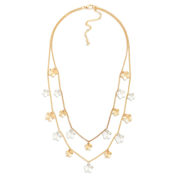 Layered Chain Link Necklace Featuring Metal Tone Flower Charms