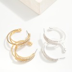 Layered Metal Hoops Earrings Featuring Rhinestone Details