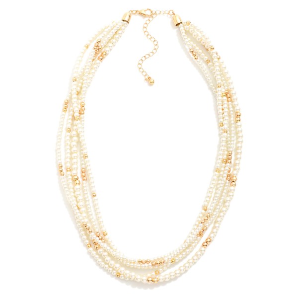 Layered Pearl Beaded Necklace Featuring Metal Tones