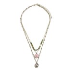 Layered Semi Precious Beaded Coin Pendant Necklace.