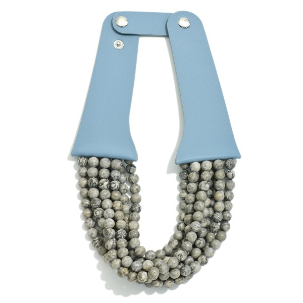 Layered Semi Precious Stone Beaded Necklace With Vegan Leather Snap Strap