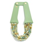Layered Semi Precious Stone Beaded Necklace With Vegan Leather Snap Strap