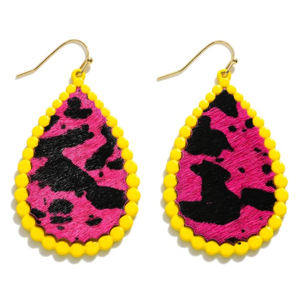 Leather Animal Print Teardrop Drop Earrings