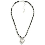 Leather Weaved Chain Link Necklace With Metal Heart Pendant