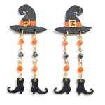 Linked Glitter Acetate Witch Hat and Boots Featuring Faceted Bead Chain Links