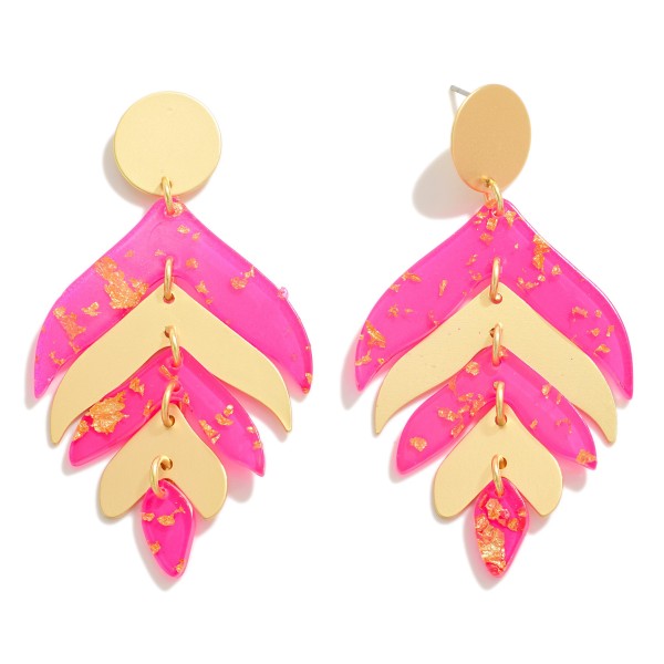 Linked Metal and Resin Foil Leaf Drop Earrings