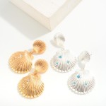 Linked Metal Shell Drop Earrings With Rhinestone Details