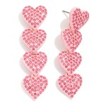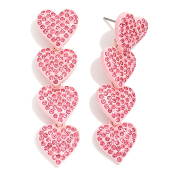 Linked Painted Metal Pave Rhinestone Hearts Post Drop Earrings