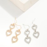 Linked Rhinestone Studded Hearts Drop Earrings