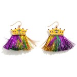 Mardi Gras Crown Drop Earring With Tinsel Accent
