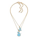 Matching Mother and Daughter Chain Link Necklace Set Featuring 'Mama' and 'Mini' Light Blue Enamel Cat Charms