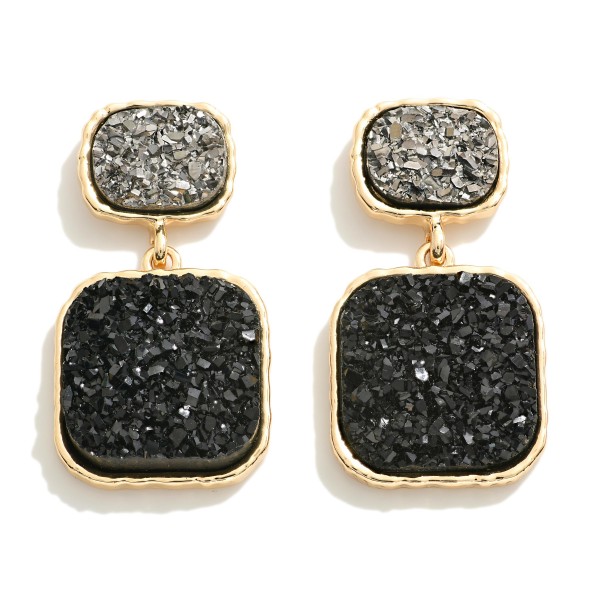Metal Backed Druzy Cluster Drop Earrings With Druzy Cluster Stud Posts