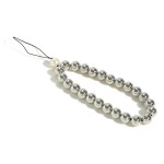 Metal Tone Beaded Cell Phone Strap With Pearl Accent
