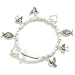 Metal Tone Beaded Charm Bracelet Featuring Crosses, Angels, & Serenity Prayer