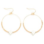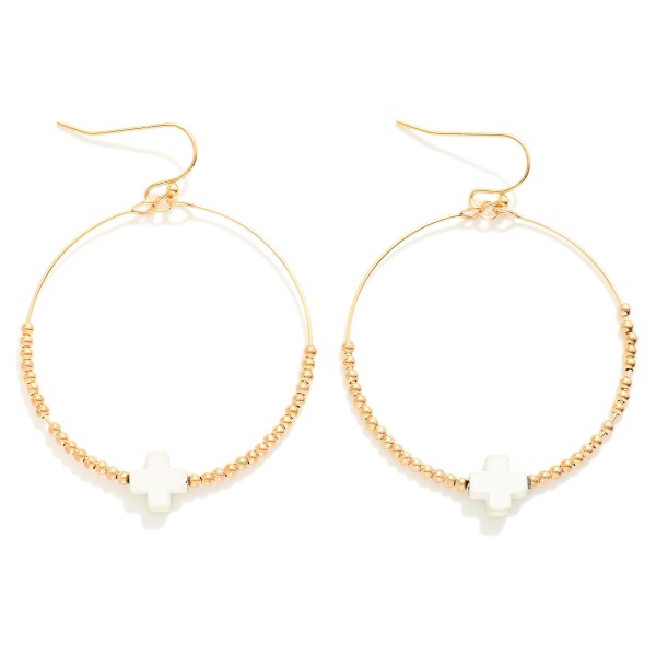 Metal Tone Beaded Hoop Earrings With Dainty Coated Cross Bead Focal