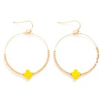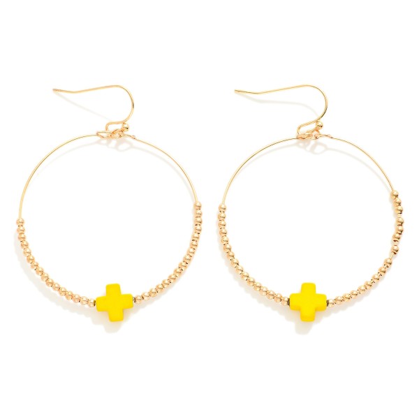 Metal Tone Beaded Hoop Earrings With Dainty Coated Cross Bead Focal