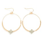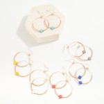 Metal Tone Beaded Hoop Earrings With Dainty Coated Cross Bead Focal