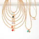 Metal Tone Beaded Necklace Featuring Enamel Plus Cross Pendants