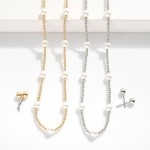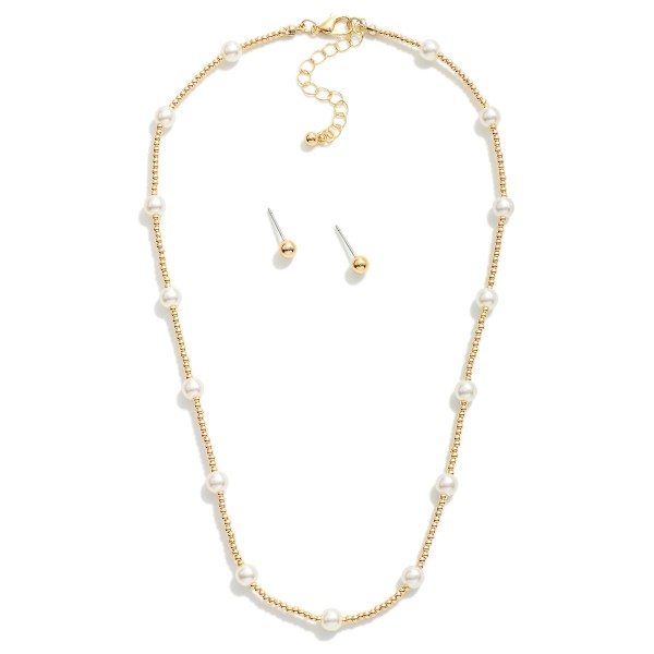 Metal Tone Beaded Necklace Featuring Pearl Details