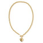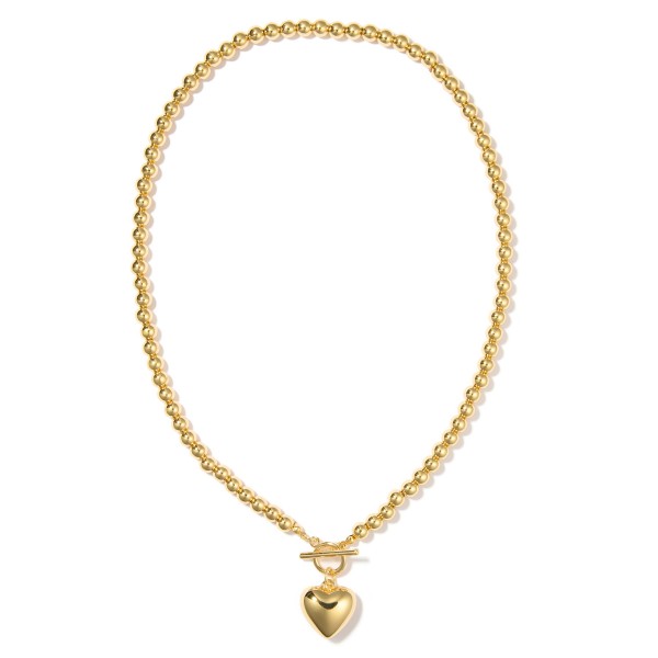 Metal Tone Beaded Necklace Featuring Puffy Heart & Toggle Clasp Pedant