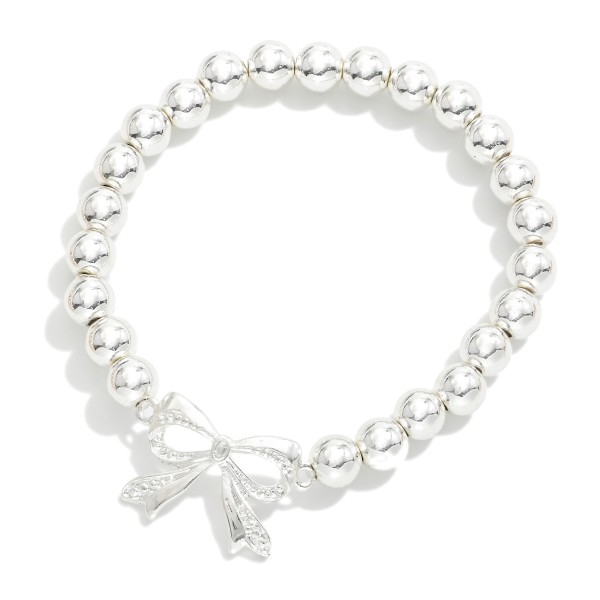 Metal Tone Beaded Stretch Bracelets With Bow Charm