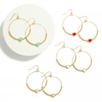 Metal Tone Beaded Wire Hoop Drop Earrings Featuring Enamel Heart Detail