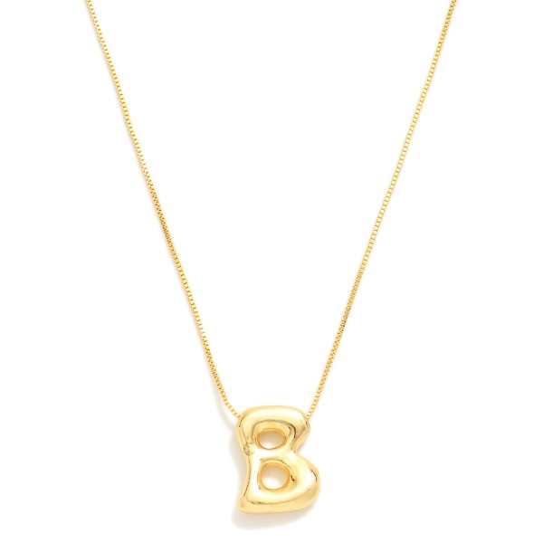 Metal Tone Box Chain Necklace Featuring Retro Bubble Initial Pendant
