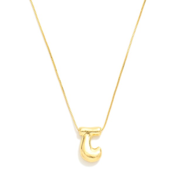 Metal Tone Box Chain Necklace Featuring Retro Bubble Initial Pendant