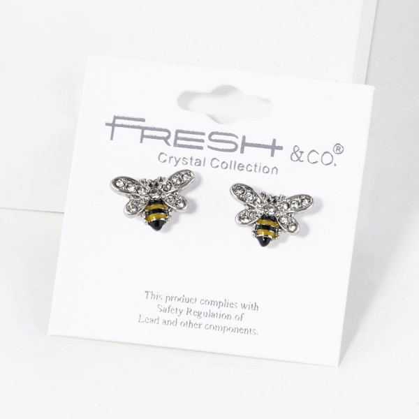 Metal Tone Bubble Bee Stud Earrings Featuring Rhinestone Accents