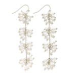 Metal Tone Chain Link Drop Earrings Featuring Linked Pearl Clusters