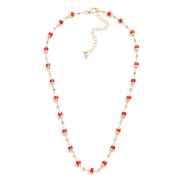 Metal Tone Chain Link Necklace Featuring Stacked Beaded Disc Stations