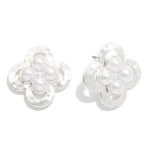View more Clover Jewelry, Pearl Earrings, Drop Earrings, Silver Tone