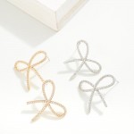 Metal Tone Cubic Zirconia Studded Simple Bow Stud Earrings