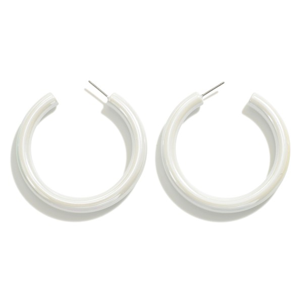 Metal Drop Hoop Earrings Featuring Abalone Finish